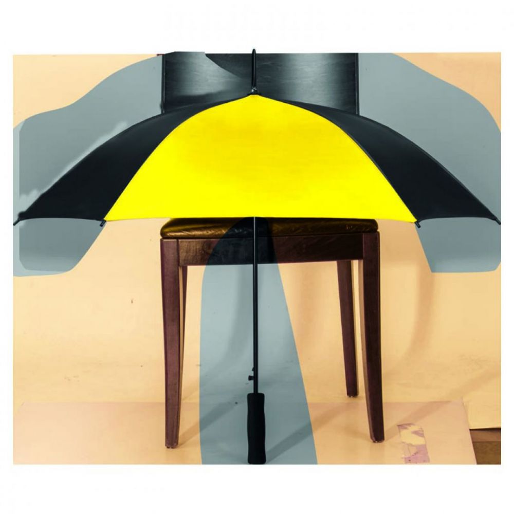 Automatický hliníkový dáždnik s mäkkou rukoväťou, polyesterovým poťahom a segmentmi rôznych farieb a veľkostí. Spôsob potlače sieťotlač.