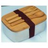 Obedár z nehrdzavejúcej ocele s bambusovým vekom, bambusovými príbormi a silikónovým remienkom. Spôsob potlače gravírovanie.