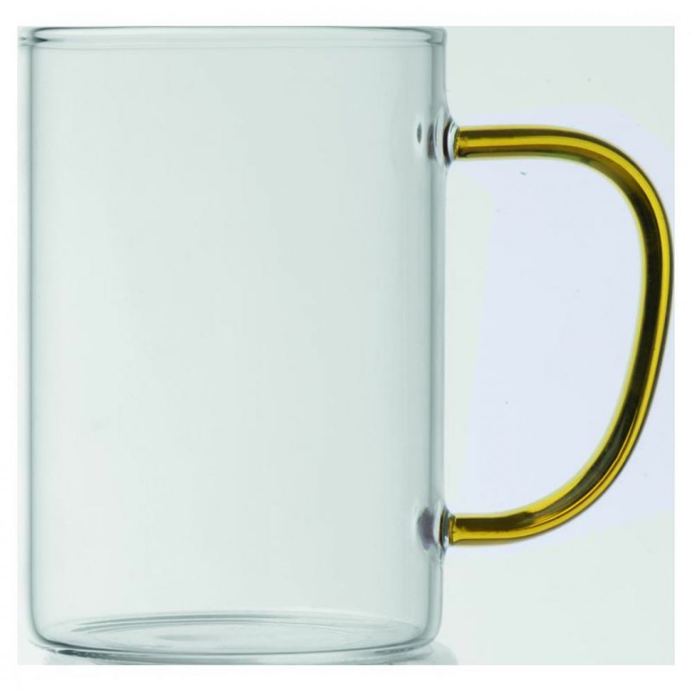 Sklenený hrnček s farebným uchom a objemom 300 ml. Spôsob potlače výpal.