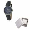 The Cacharel " Hirondelle" watch is the reflection of the brand image : feminine and romantic. The deep night blue color of the leather bracelet and the sunray effect dial are highlighted by crisp chrome metals parts & glittery yet understated flower print.